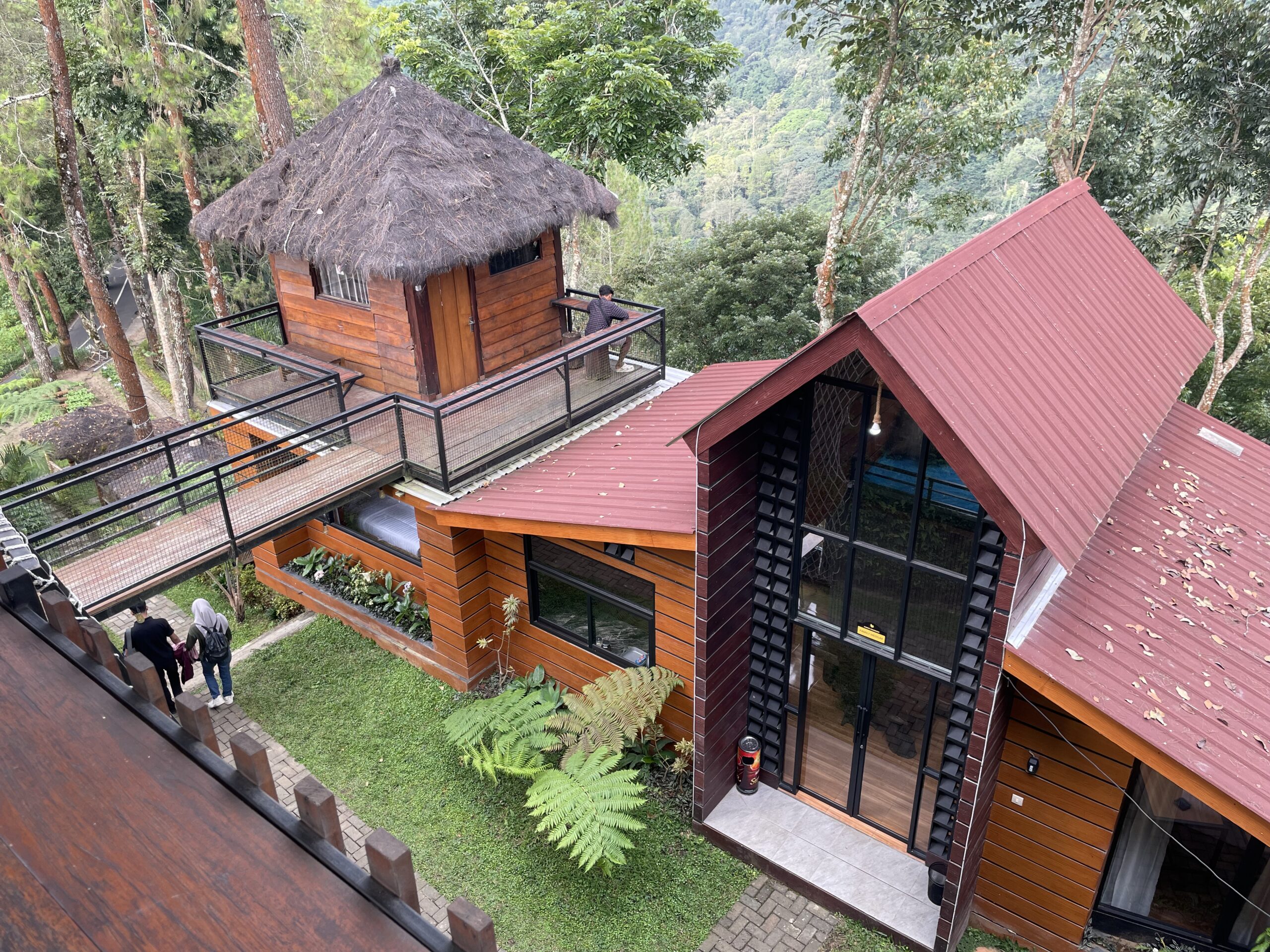Rasakan keindahan Rumah Pohon kami, yang menawarkan sudut pandang unik atas kehijauan hutan dan area villa. Abadikan setiap momen berharga di berbagai Spot Foto Aesthetic yang tersebar strategis, mulai dari gazebo restoran dengan latar belakang hutan pinus, sudut-sudut fotogenik jalan setapak, keunikan rumah pohon, hingga area terbuka yang memadukan arsitektur dengan lanskap alam. Rasakan kehangatan dan keaslian tinggal di villa kayu